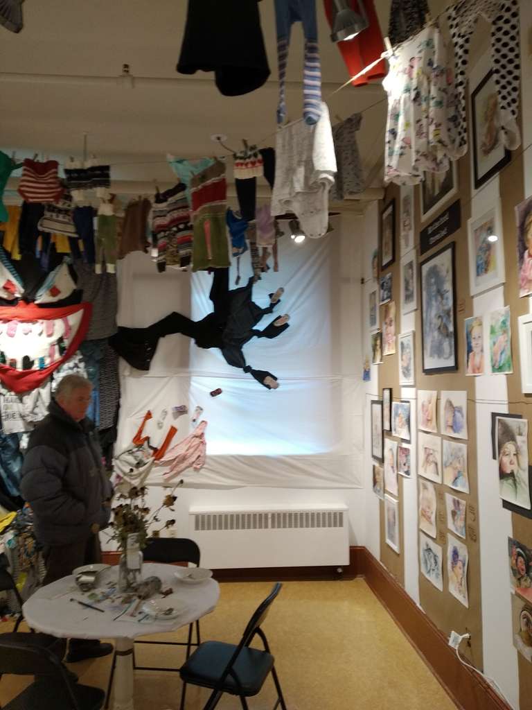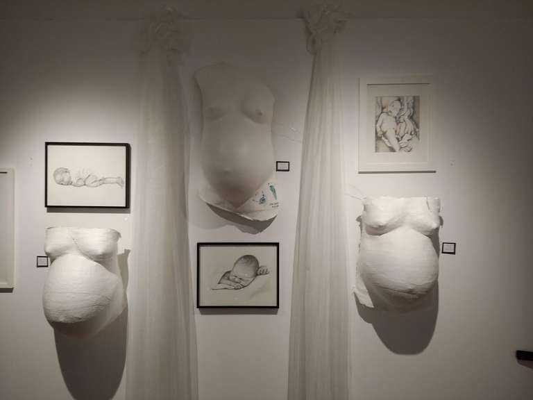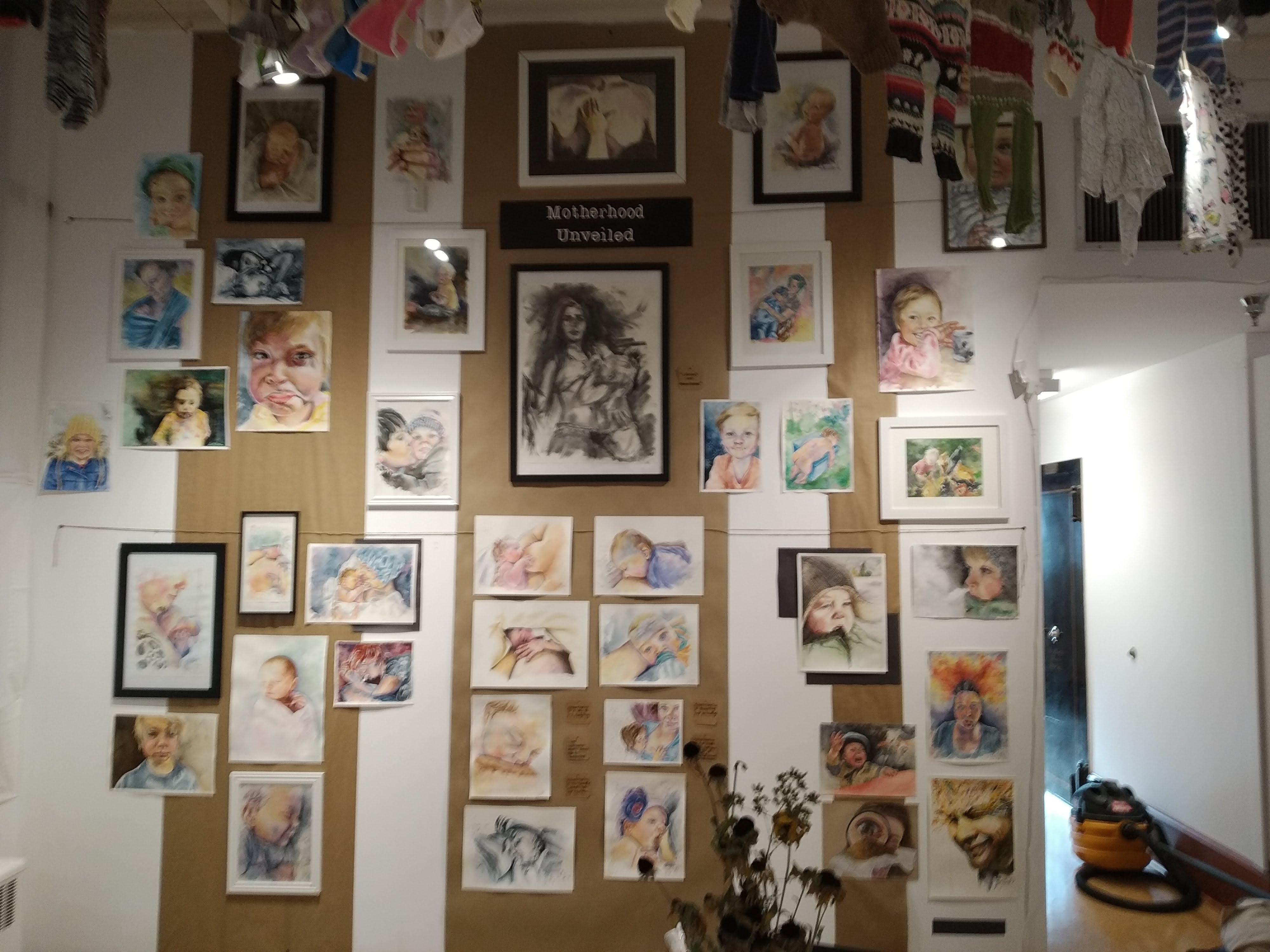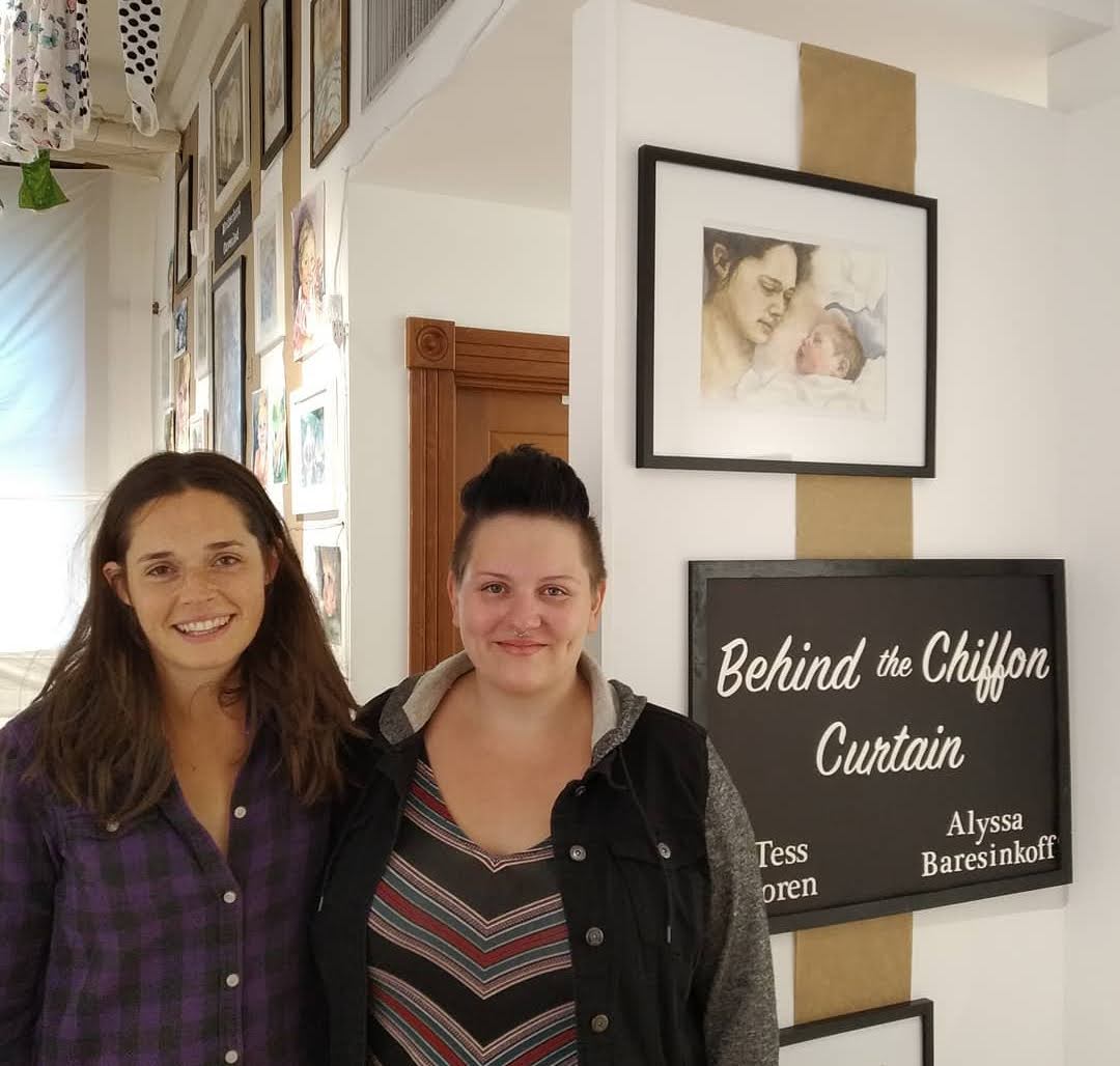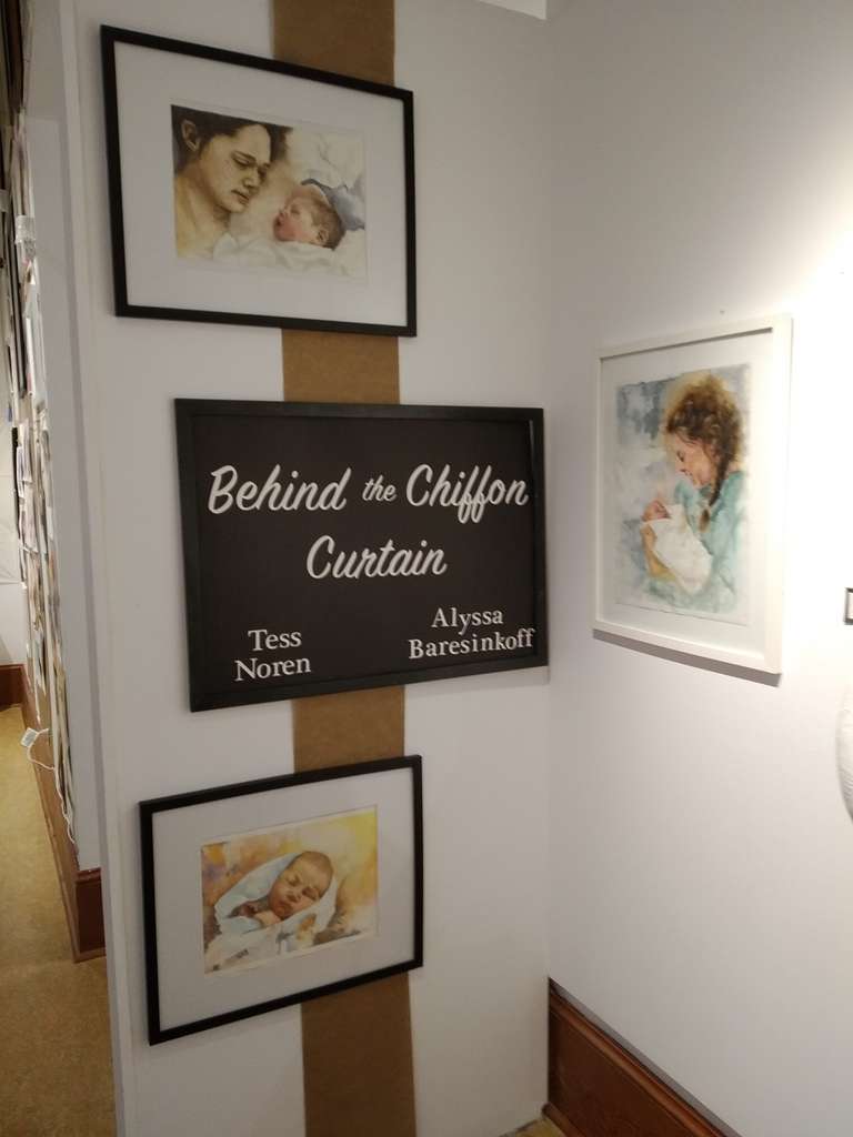 I love collaborating with like minded people! I have had the opportunity to collab with a wonderful friend of mine, Tess Noren. She's beautifully talented, and we share many of the same passions! In October of 2019 I was offered to show some art for Breastfeeding week at our local gallery, and instantly knew that I had to invite Tess on board. Together we put together a great exhibit, with our family and motherhood themed art, and a big 'ol "laundry monster" installation! We called it Behind the Chiffon curtain, which provided a look into what motherhood truly looks like. It was exhausting, and at times stressful, but so much fun, and very rewarding!
